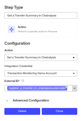 Add a step to Get a Transfer Summary from Chainalysis. Pass in the External ID created in the previous step