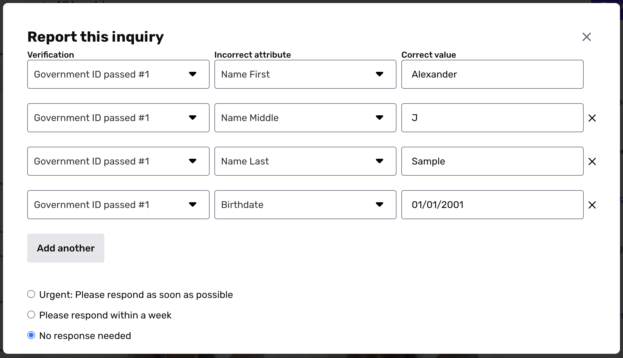 - Additional Inquiry IDs or Inquiry Template IDs, if the issue affects several Inquiries